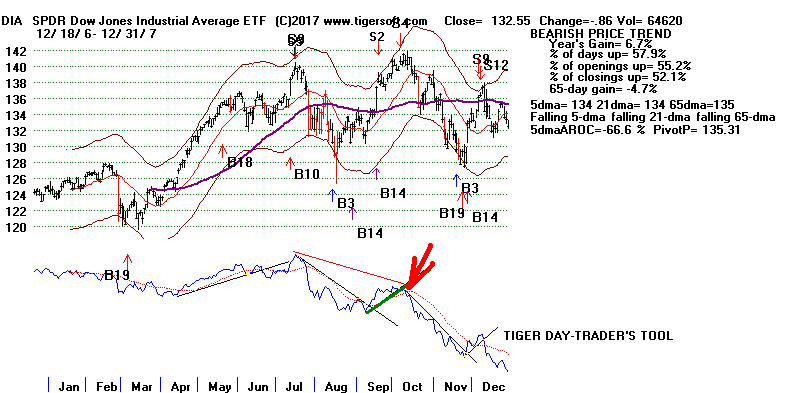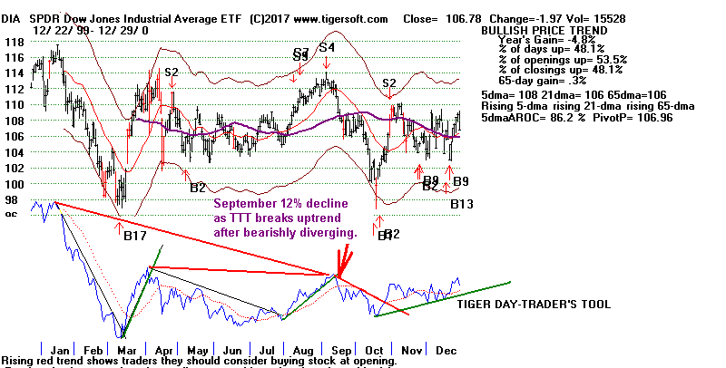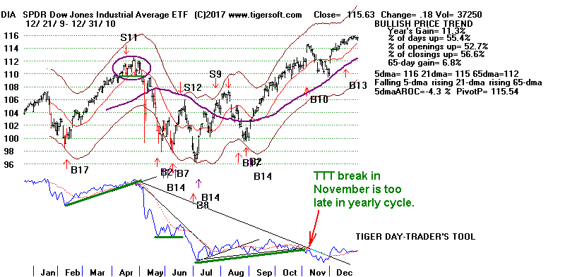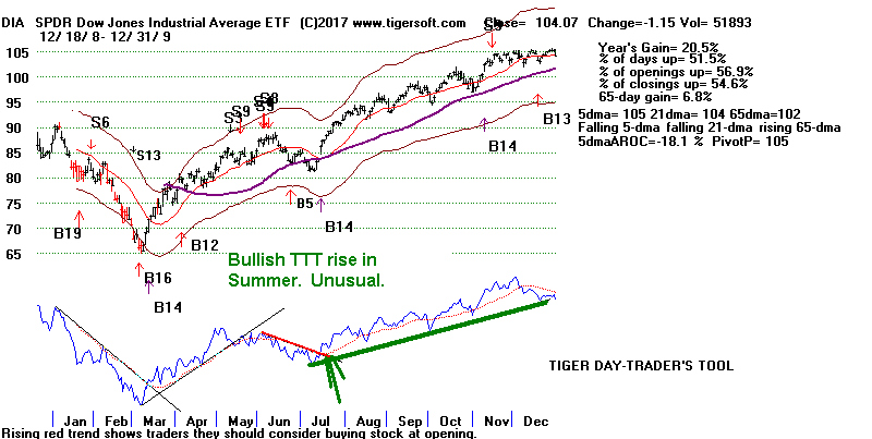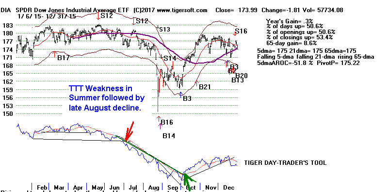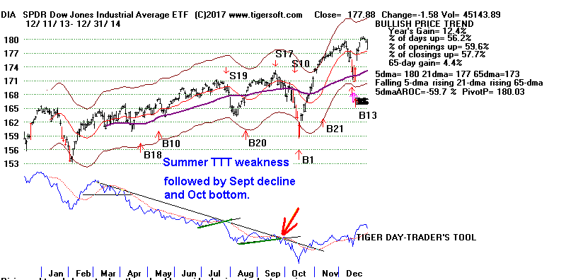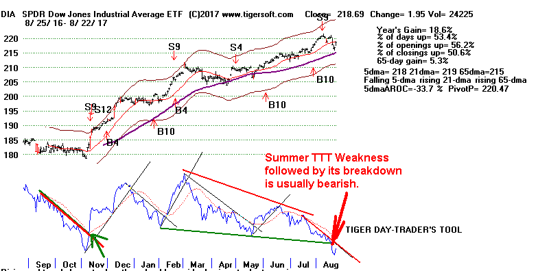 first, a Summer TTT bearish divergence from the price action of the DJI,