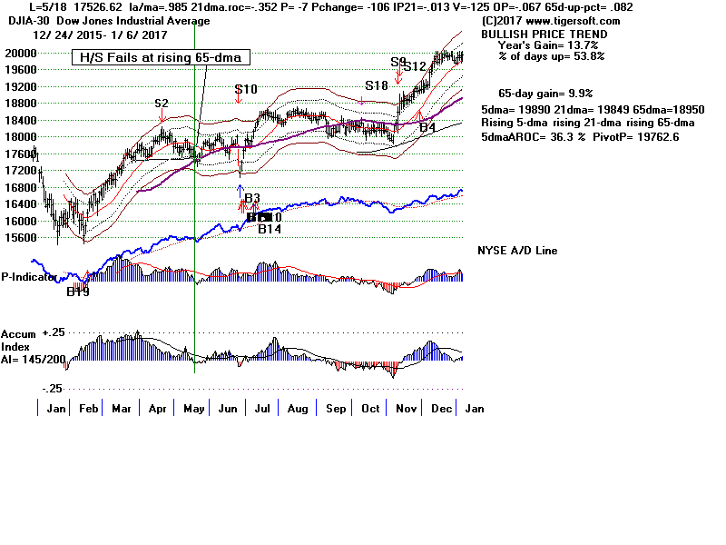 3) Expect lots of support from a rising 65-dma. A H/S Pattern that is