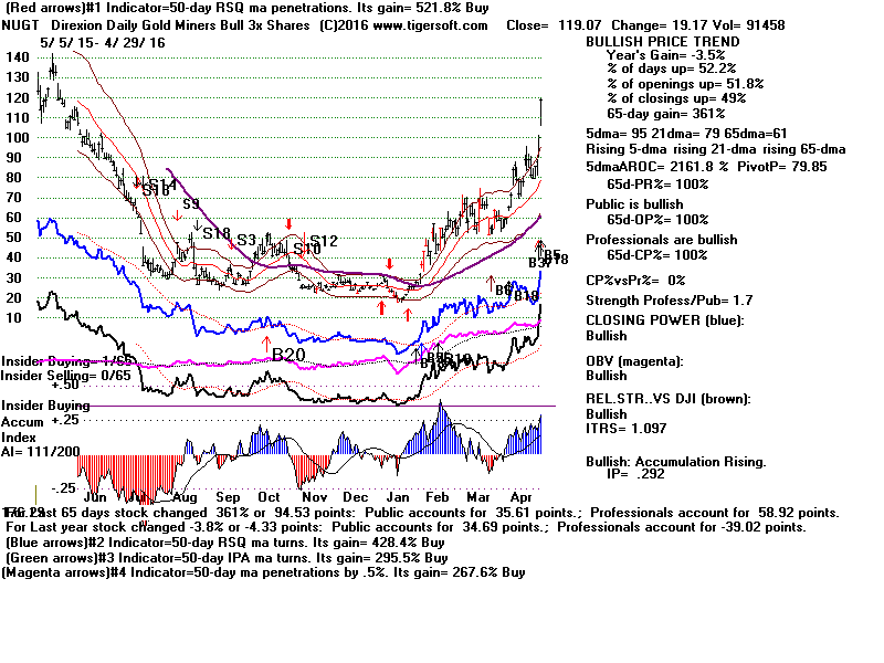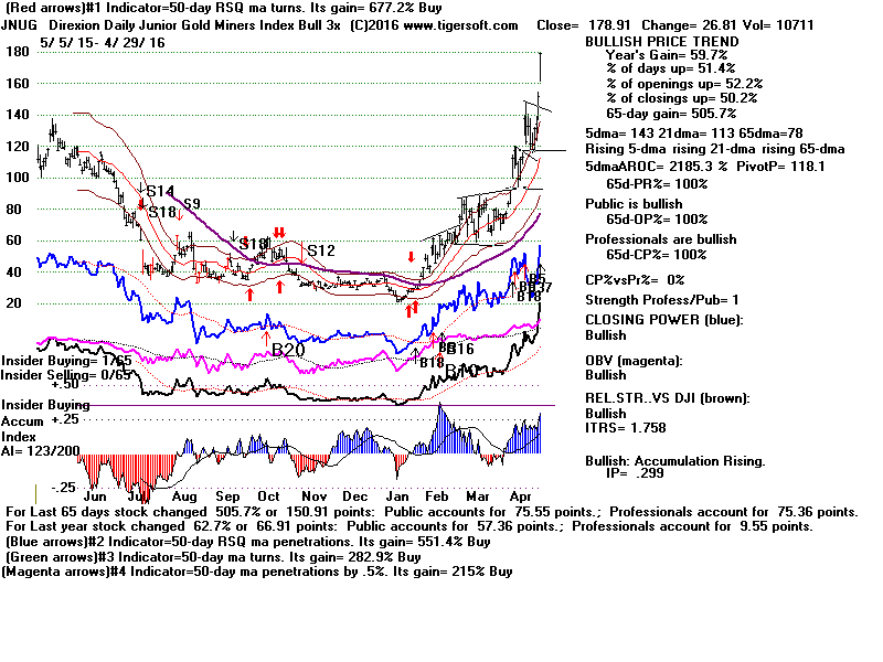 2185.3 JNUG 178.91 142.93 118.1 26.81 .3 123 Rising Rising .514 bullish --------------------------------------------------------------------------------------------- 2161.8 NUGT 119.07 94.51 79.85 19.17 .29 111 Rising Rising .522 bullish --------------------------------------------------------------------------------------------- 1408.3 GDXX 66.61 56.85 50.94 7.35 .4 80 Rising Rising .49 bullish --------------------------------------------------------------------------------------------- 1258.5 GDJJ 88.5 77.4 69.02 6.58 .35 72 Rising Rising .418 bullish --------------------------------------------------------------------------------------------- 743.2 BRZU 104.97 98.29 87.13 2.68 .23 132 Rising Rising .466 vol.fell on up-day --------------------------------------------------------------------------------------------- 742 USLV 19.44 17.97 16.89 .72 .1 91 Rising Falling .518 bullish --------------------------------------------------------------------------------------------- 741 UWTI 32.09 29.73 26.21 .74 .1 70 Rising Rising .406 bullish --------------------------------------------------------------------------------------------- 720.3 BIS 40.11 37.49 35.37 2.05 -.03 100 ? ? .498 bullish --------------------------------------------------------------------------------------------- 647.2 EWV 51.52 48.18 46.07 .95 .11 46 ? ? .506 vol.fell on up-day --------------------------------------------------------------------------------------------- 564.6 DGAZ 15.64 15.94 14.89 -2.06 -.17 113 Rising Falling .534 vol.fell on down-day --------------------------------------------------------------------------------------------- 528.6 UBR 47.69 45.4 41.84 1.15 .34 118 Rising Rising .466 vol.fell on up-day --------------------------------------------------------------------------------------------- 505.8 AGQ 43.6 41.34 39.61 1.05 .07 70 Rising Falling .51 vol.fell on up-day --------------------------------------------------------------------------------------------- 491.7 SOXS 37.35 34.42 34.64 2.62 .06 80 Rising ? .466 bullish --------------------------------------------------------------------------------------------- 478.7 UGL 43.46 41.08 39.79 1.65 .07 86 Rising Falling .474 bullish --------------------------------------------------------------------------------------------- 475.3 UCO 11.79 11.25 10.41 .14 .11 69 Rising Rising .41 bullish --------------------------------------------------------------------------------------------- 470.8 TECS 29.77 28.34 27.26 .68 -.15 74 Rising Rising .494 vol.fell on up-day --------------------------------------------------------------------------------------------- 452.2 SQQQ 20.15 19.25 18.45 .32 -.08 26 Rising Rising .502 bullish --------------------------------------------------------------------------------------------- 447 YCL 68.59 65.01 63.34 1.63 -.16 103 Rising Rising .422 bullish --------------------------------------------------------------------------------------------- 441.6 DAG 4.1 4.03 3.88 .05 .04 45 Rising Rising .454 vol.fell on up-day --------------------------------------------------------------------------------------------- 427.6 DGP 28.04 26.52 25.93 1.47 -.15 79 Rising Rising .494 bullish --------------------------------------------------------------------------------------------- 388.8 REW 47.47 45.57 44.07 .87 -.13 95 Rising Rising .466 vol.fell on up-day --------------------------------------------------------------------------------------------- 376.9 LBJ 84.5 81.19 74.5 1.29 .11 117 Rising Rising .45 vol.fell on up-day --------------------------------------------------------------------------------------------- 345.1 COPX 17.19 16.3 15.71 .86 .05 80 Rising Rising .458 bullish --------------------------------------------------------------------------------------------- 335.8 YANG 24.18 23.23 23.4 1.07 .05 69 Rising Falling .542 bullish --------------------------------------------------------------------------------------------- 296.5 QID 31.66 30.71 29.82 .3 -.11 47 Rising Rising .486 bullish --------------------------------------------------------------------------------------------- 264.6 DPK 28.91 28.07 27.81 .34 .2 85 Falling Falling .554 vol.fell on up-day --------------------------------------------------------------------------------------------- 260.3 VXX 16.83 16.11 16.19 .55 -.12 31 Rising Falling .454 bullish --------------------------------------------------------------------------------------------- 231.6 UPW 113.23 110.66 108.19 .88 -.01 120 Rising Falling .522 vol.fell on up-day --------------------------------------------------------------------------------------------- 227.4 FXP 42.37 41.25 41.43 1.25 -.07 67 Rising Falling .538 bullish --------------------------------------------------------------------------------------------- 214 SRTY 26.5 25.68 25.98 .71 -.08 80 Rising Falling .506 bullish --------------------------------------------------------------------------------------------- 212.8 TZA 40.35 39.1 39.57 1.07 -.11 68 Rising Falling .498 vol.fell on up-day --------------------------------------------------------------------------------------------- 199.1 ULE 17.06 16.7 16.49 .31 -.07 147 Rising Falling .494 bullish --------------------------------------------------------------------------------------------- 196 SDOW 15.54 15.16 15.03 .15 -.16 47 Rising Falling .458 bullish --------------------------------------------------------------------------------------------- 190.2 SPXU 28.51 27.81 27.63 .42 -.15 40 Rising Falling .49 bullish --------------------------------------------------------------------------------------------- 188.3 UMX 27.29 26.47 26.27 1.02 .52 55 ? ? .229 bullish --------------------------------------------------------------------------------------------- 186.9 EFU 39.88 39.08 38.87 .41 .15 102 Falling Rising .522 vol.fell on up-day --------------------------------------------------------------------------------------------- 180.4 SPXS 15.16 14.79 14.71 .24 -.18 38 Rising Falling .478 bullish ------