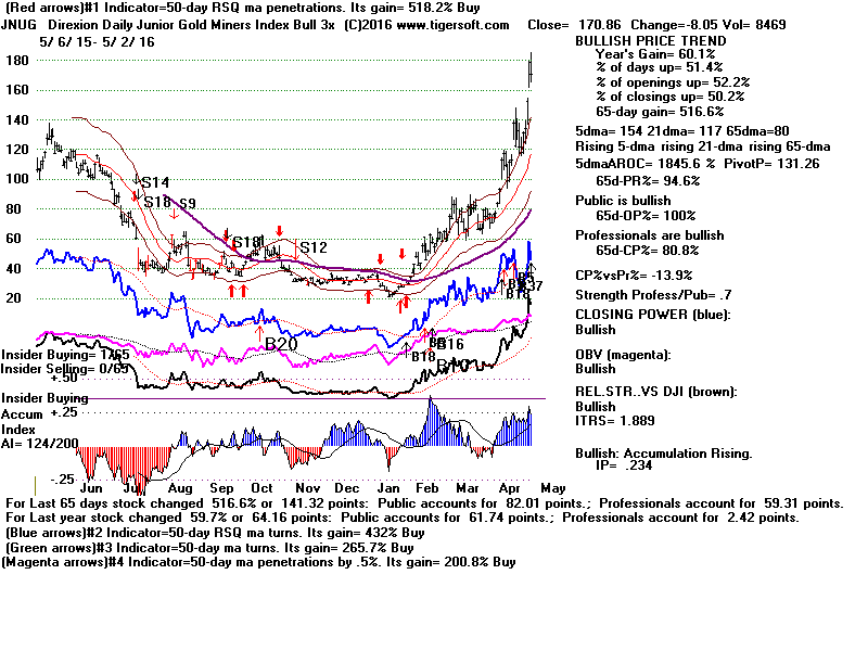 1845.6 JNUG 170.86 153.49 131.26 -8.05 .23 124 Rising Rising .514 vol.fell on down-day --------------------------------------------------------------------------------------------- 1748 NUGT 112.89 101.12 85.51 -6.18 .21 112 Rising Rising .522 vol.fell on down-day --------------------------------------------------------------------------------------------- 1257.6 GDJJ 88.49 81.3 72.33 -.01 .14 73 Rising ? .418 bearish --------------------------------------------------------------------------------------------- 1181.1 GDXX 64.37 59.54 53.18 -2.24 .3 81 Rising Rising .49 vol.fell on down-day --------------------------------------------------------------------------------------------- 843.8 DGAZ 17.58 16.48 15.57 1.94 -.14 112 Rising Falling .534 vol.fell on up-day --------------------------------------------------------------------------------------------- 622.1 UWTI 29.91 30.47 28.24 -2.18 .14 71 Rising Rising .402 vol.fell on down-day --------------------------------------------------------------------------------------------- 611.9 BRZU 99.16 100.7 95 -5.81 .19 132 Rising Rising .466 bearish --------------------------------------------------------------------------------------------- 512.1 BIS 39.21 38.26 36.41 -.9 0 100 ? ? .498 vol.fell on down-day --------------------------------------------------------------------------------------------- 469.5 DGP 28.42 27.01 25.7 .38 -.07 78 Rising Rising .498 vol.fell on up-day --------------------------------------------------------------------------------------------- 432.3 LBJ 81.52 82.59 78.85 -2.98 -.02 117 Rising Rising .45 bearish --------------------------------------------------------------------------------------------- 424.5 YCL 68.86 66.12 63.07 .27 -.09 103 Rising Rising .422 bullish --------------------------------------------------------------------------------------------- 416.3 UBR 45.62 46.15 44.36 -2.07 .33 118 Rising Rising .466 vol.fell on down-day --------------------------------------------------------------------------------------------- 413.7 UGL 43.19 41.76 40.09 -.27 -.02 85 Rising Falling .474 vol.fell on down-day --------------------------------------------------------------------------------------------- 411.7 USLV 18.37 18.27 17.24 -1.07 -.03 90 Rising Falling .518 vol.fell on down-day --------------------------------------------------------------------------------------------- 410.9 COPX 17.05 16.57 15.98 -.14 .02 81 Rising Rising .458 vol.fell on down-day --------------------------------------------------------------------------------------------- 398.5 UPW 117.01 112.43 109.7 3.78 .13 121 Rising ? .522 bullish --------------------------------------------------------------------------------------------- 387.1 GASL 40.45 41.58 40.91 -.72 .19 87 Rising Rising .418 vol.fell on down-day --------------------------------------------------------------------------------------------- 373.2 UCO 11.25 11.42 10.88 -.54 .15 70 Rising Rising .406 vol.fell on down-day --------------------------------------------------------------------------------------------- 372.5 EWV 49.66 48.9 46.29 -1.86 .1 47 ? Falling .502 vol.fell on down-day --------------------------------------------------------------------------------------------- 333.4 TECS 29.15 28.72 27.59 -.62 -.14 73 Rising Rising .49 vol.fell on down-day --------------------------------------------------------------------------------------------- 308.2 REW 46.88 46.14 44.42 -.59 -.14 94 Rising Rising .462 vol.fell on down-day --------------------------------------------------------------------------------------------- 298.7 SQQQ 19.6 19.48 18.65 -.55 -.06 25 Rising Rising .498 vol.fell on down-day --------------------------------------------------------------------------------------------- 291.9 SOXS 36.65 34.82 33.19 -.7 .04 80 Rising Rising .462 vol.fell on down-day --------------------------------------------------------------------------------------------- 283.3 RETL 38.93 37.12 37.07 1.97 .04 152 Rising Falling .578 bullish --------------------------------------------------------------------------------------------- 281.7 AGQ 41.94 41.81 40.21 -1.66 -.03 69 Rising Falling .51 vol.fell on down-day --------------------------------------------------------------------------------------------- 229.7 ERX 29.91 30.3 29.88 -.08 .18 119 Rising Rising .478 vol.fell on down-day --------------------------------------------------------------------------------------------- 227.5 ULE 17.25 16.85 16.57 .19 -.01 147 Rising Falling .494 bullish --------------------------------------------------------------------------------------------- 210 QID 31.11 30.97 30.13 -.55 -.08 46 Rising Rising .482 vol.fell on down-day --------------------------------------------------------------------------------------------- 198 YANG 24.32 23.42 23.02 .14 .08 69 ? ? .542 vol.fell on up-day --------------------------------------------------------------------------------------------- 192.6 UMX 27.29 26.68 26.27 0 .53 56 ? ? .225 ? --------------------------------------------------------------------------------------------- 165.7 EURL 23.96 23.69 23.51 .55 -.15 147 Rising Falling .45 vol.fell on up-day --------------------------------------------------------------------------------------------- 161.7 DIG 36.47 36.71 36.31 -.08 .29 124 Rising Rising .462 vol.fell on down-day --------------------------------------------------------------------------------------------- 136.7 UPV 40.05 39.71 39.24 .58 .31 138 Falling Rising .434 bullish --------------------------------------------------------------------------------------------- 135.4 UYM 43.34 43.42 43.29 .34 .18 118 Rising Rising .482 vol.fell on up-day --------------------------------------------------------------------------------------------- 134.5 FXP 42.54 41.48 40.97 .17 -.03 66 ? ? .538 vol.fell on up-day --------------------------------------------------------------------------------------------- 99.2 DAG 3.96 4.05 4.08 -.14 0 45 Rising Rising .45 bearish 