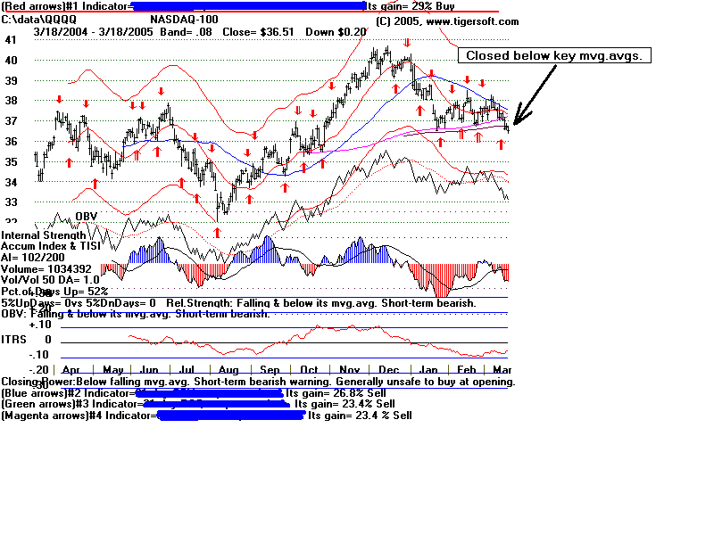 of the 21-day ma; and finally the breaks in the Closing Power uptrends all warned of