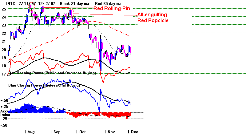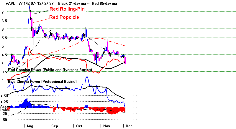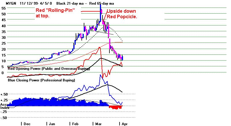 a weak Closing Power in the case of stocks that have advanced a long ways.