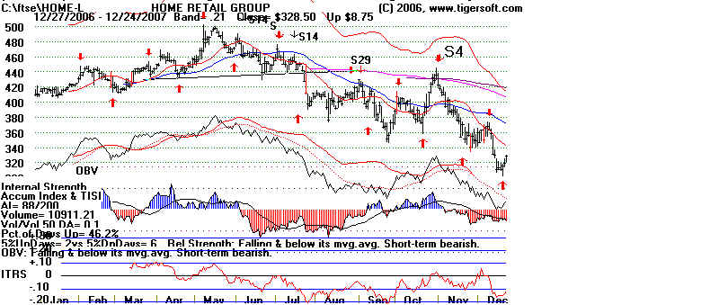 market and the Tiger Accumulation Index drops below -.25. The sell signals gives