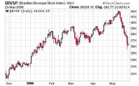 Brazil's Bovespa, down 6,000 points, or 14 percent: