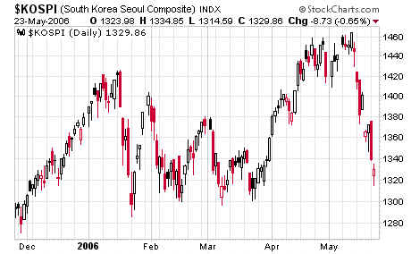 The Korean Seoul Composite, fell 140 points, or 9.5 percent: