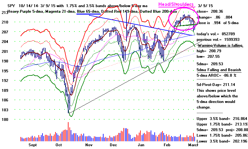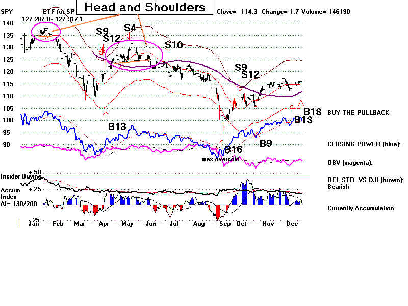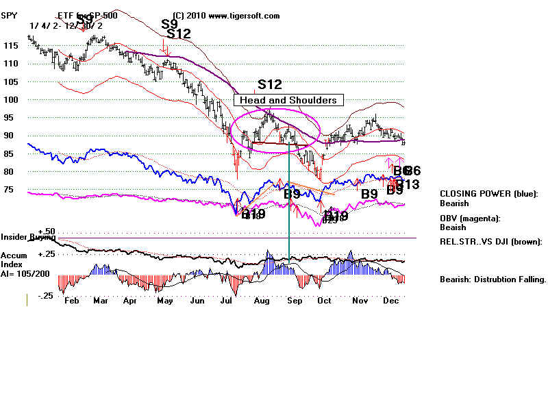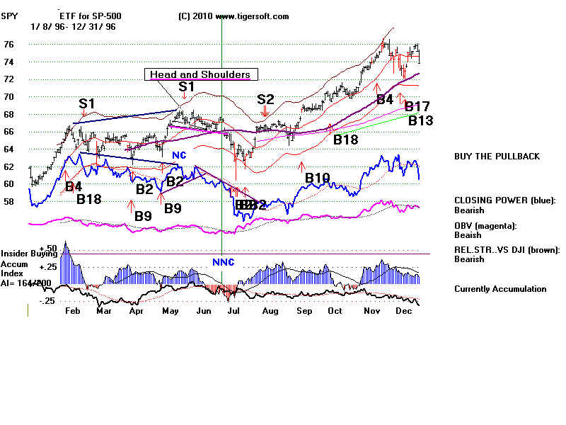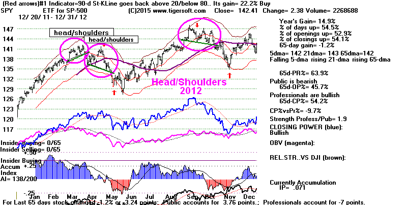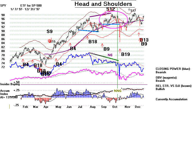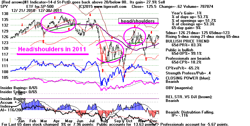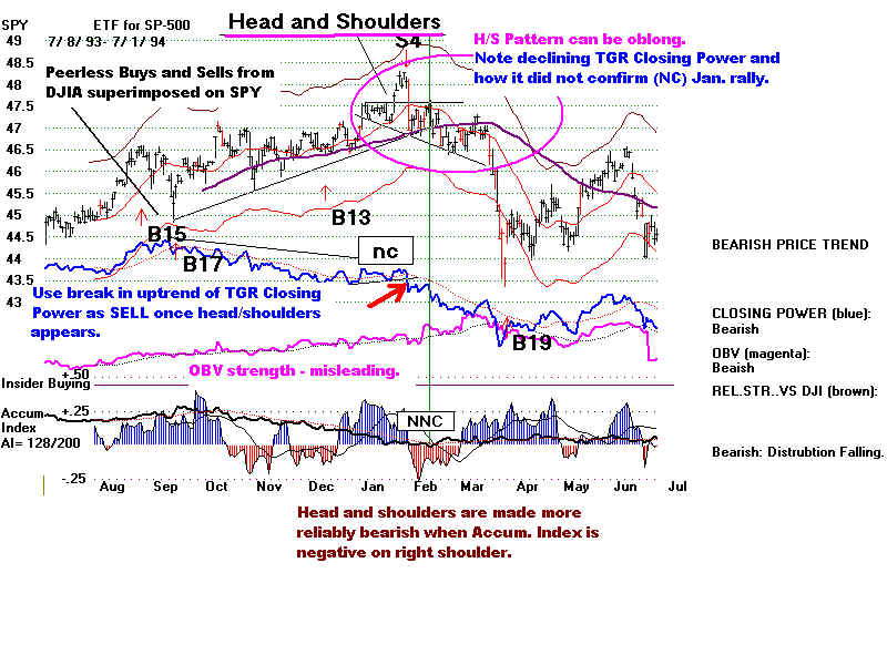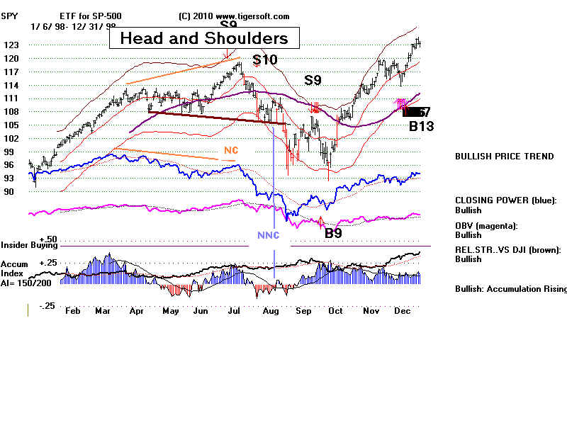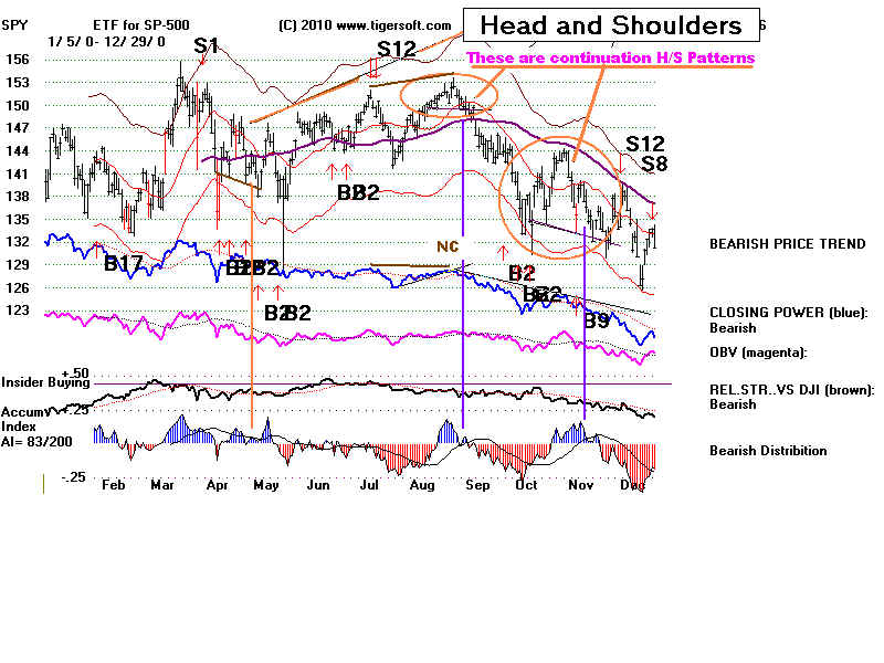 Service www.tigersoft.com 3/9/2015 ![]() Head and Shoulders: 1993-2015 in the SP-500 ETF, SPY Jan 1994 lengthy rally, oblong H& S, AI<0 on right shoulder, lagging TGR Closing Power June 1996 lengthy rally, oblong H& S, AI<0 on right shoulder, lagging TGR Closing Power Oct 1997 lengthy rally, oblong H& S, AI<0 on right shoulder, lagging TGR Closing Power Aug 1998 lengthy rally, oblong H& S, AI<0 on right shoulder, lagging TGR Closing Power May 2000 in sidewise range, continuation. H& S Sep 2000 in sidewise range, continuation. H& S, lagging TGR Closing Power Nov 2000 in sidewise range, continuation H& S Feb 2001 continuation. H& S, lagging TGR Closing Power June 2001 continuation H& S Sept 2002 continuation H& S May 2010 lengthy rally, H&S Additional H/S charts added on 3/9/2015 |